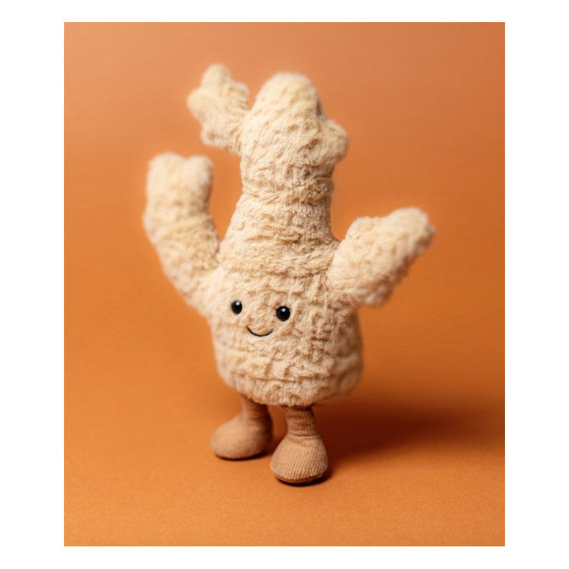 Wesoły Imbir marki Jellycat to bardzo miły i przyjemny w dotyku pluszak. Ma futerko w beżowym kolorze, uśmiechniętą buźkę, mięciutki brzuszek i urocze sztruksowe stópki. Można się z nim bawić, ściskać i przytulać. Pluszak został uszyty z najwyższej jakości, trwałych i bezpiecznych dla dzieci materiałów.